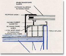 ARC-O-LITE Flat Slping pre-assembled plastic skylights manufactured by Architectural Plastics Limited, Mississauga, Ont.; of size and configuration as indicated in schedule; complete with clear tempered on clear tempered sealed glass units and insulated vinyl self flashing curb frame and pre-painted aluminum retaining frame.