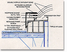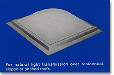 ARC-O-LITE Sloped Roof pre-assembled plastic skylights manufactured by Architectural Plastics Limited, Mississauga, Ont.; of size and type as per Model No. _______, complete with clear outer dome [clear] [white translucent] inner dome and insulated vinyl curb frame and pre-painted aluminum retaining frame.